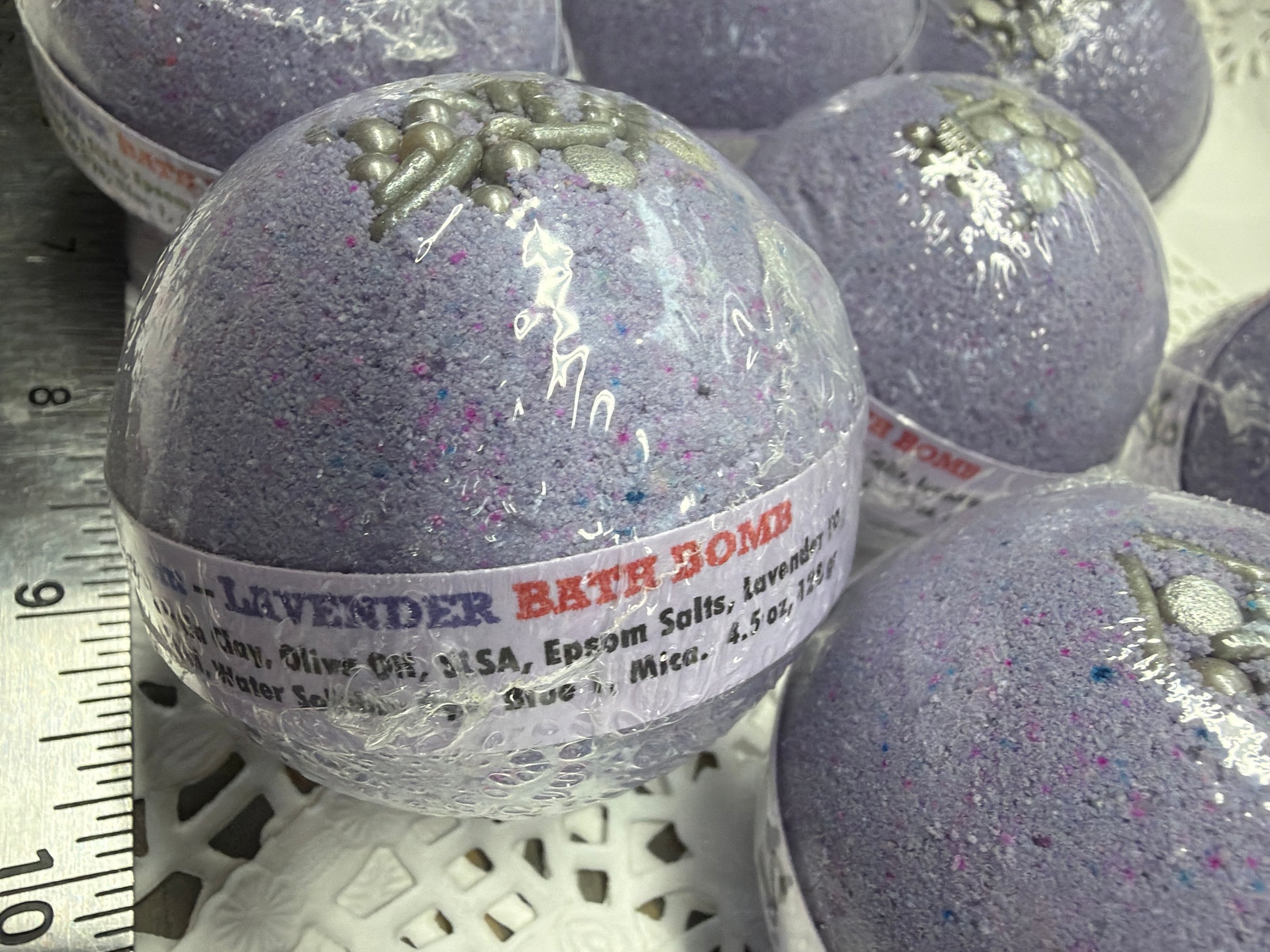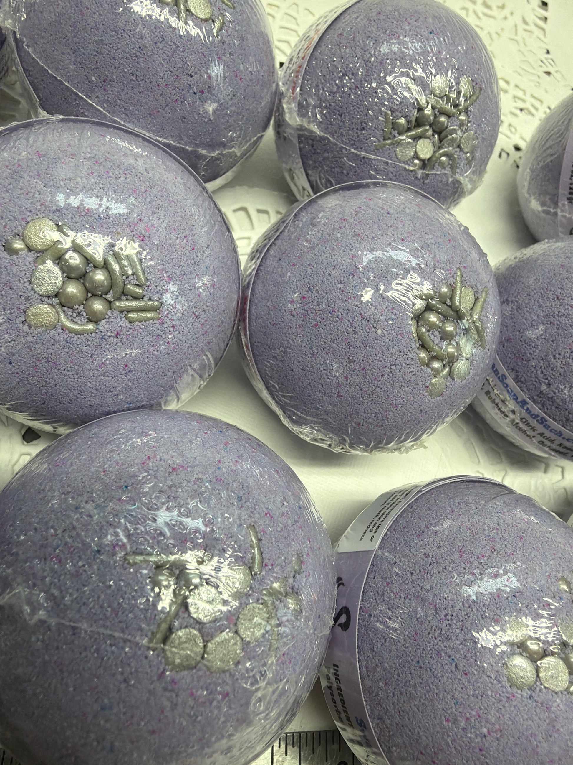 Bath Bomb - Lavender Bath Bombs with Embeds of colors topped with silver sugar sprinkles
